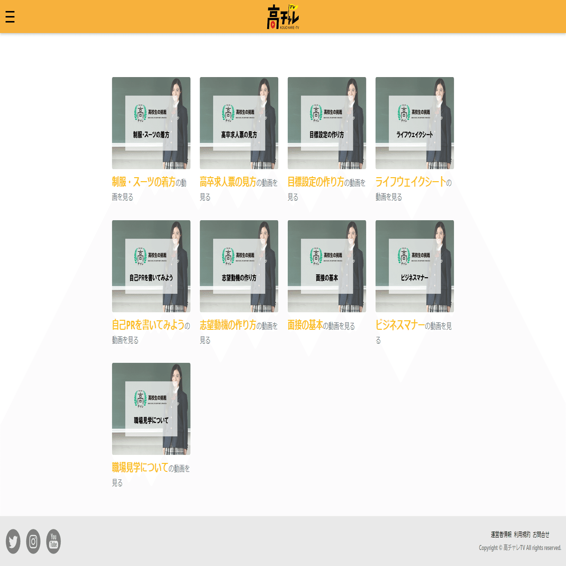 高チャレ冊子で掲載している就職活動に役立つ項目をより分かりやすく動画で見ることが出来ます。冊子解説動画を見ながら、自己PRや志望動機などが冊子に記入できるようになってます。